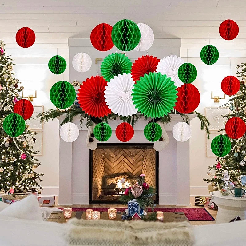 Fãs de papel para decoração de festa de Natal, Guirlandas de cordão circular com pontos