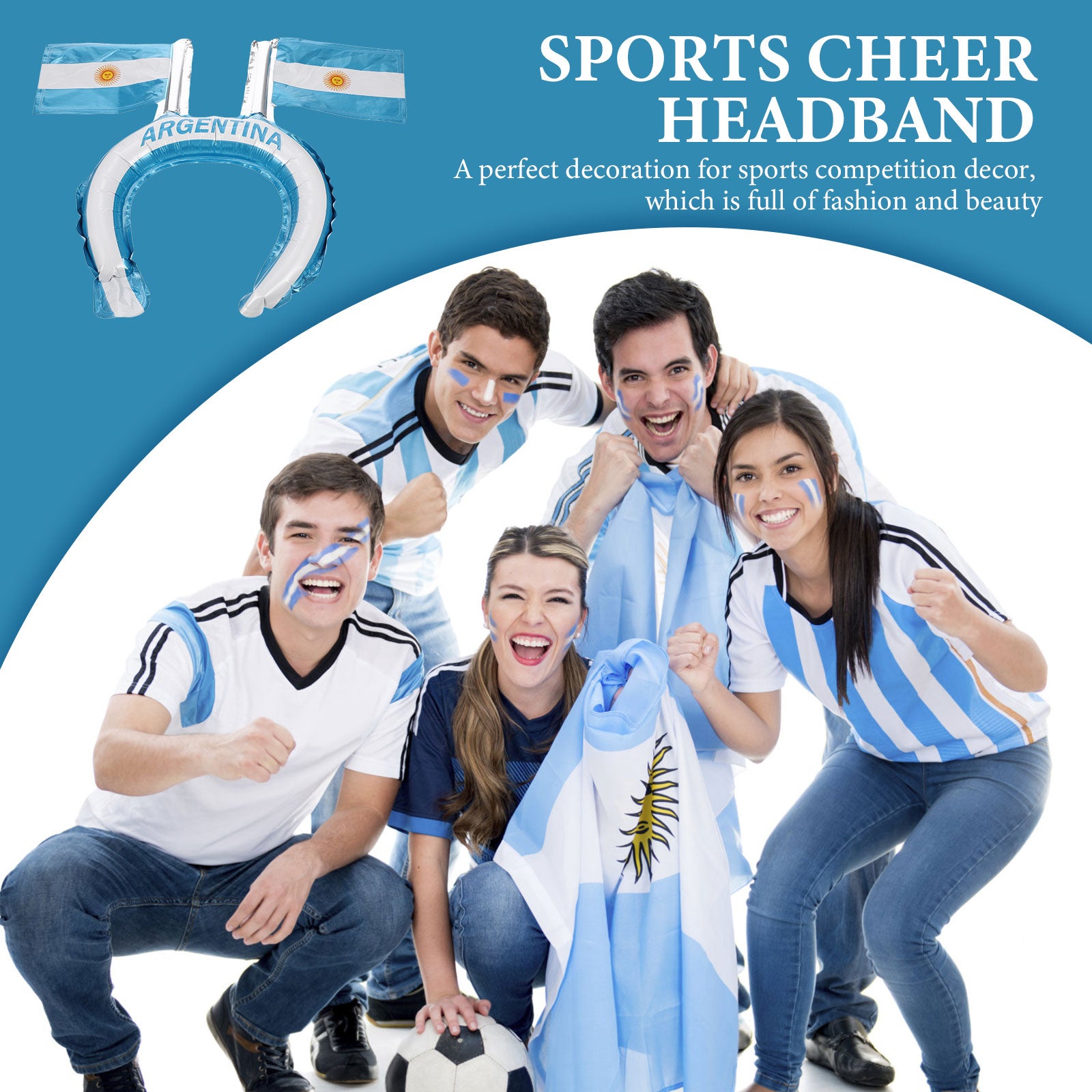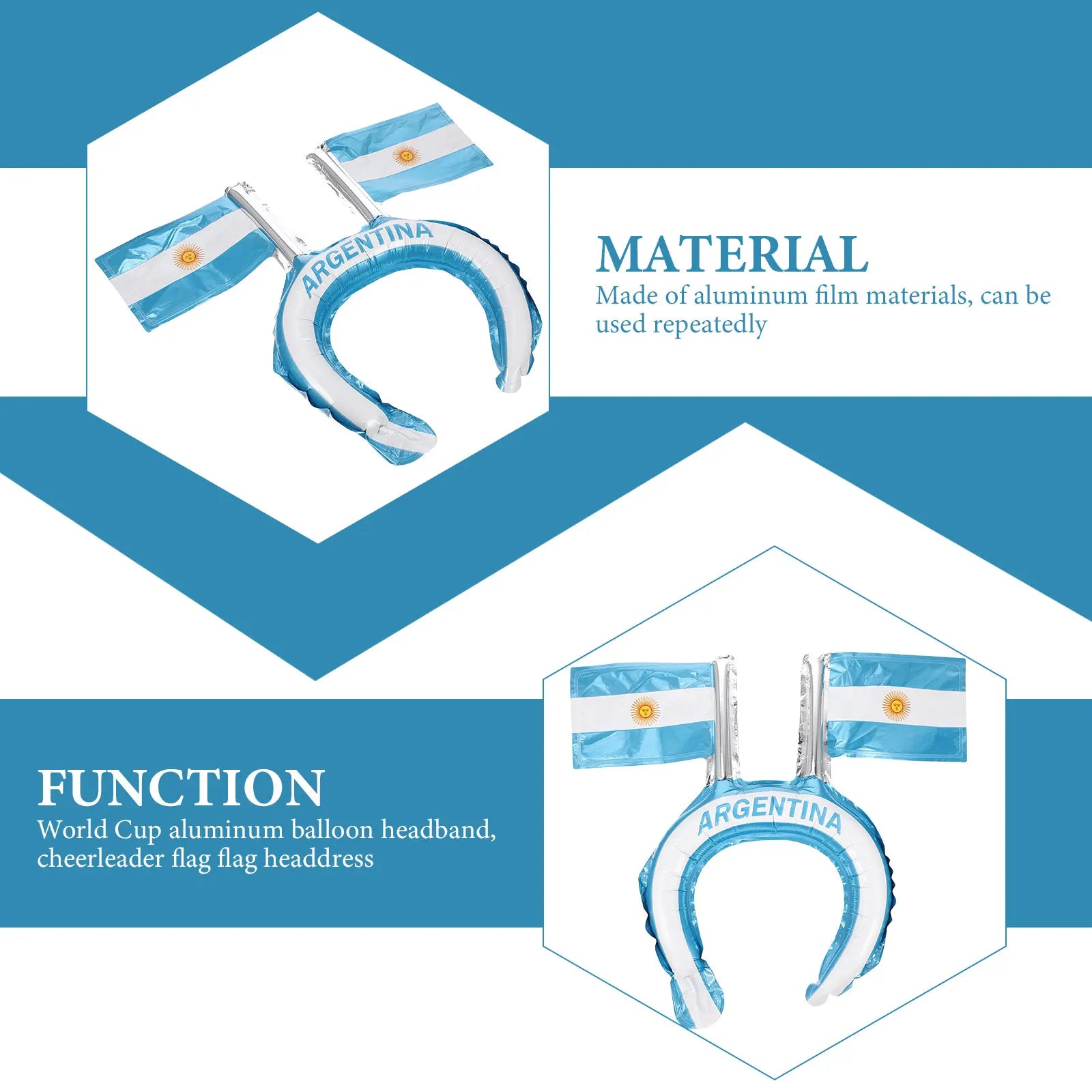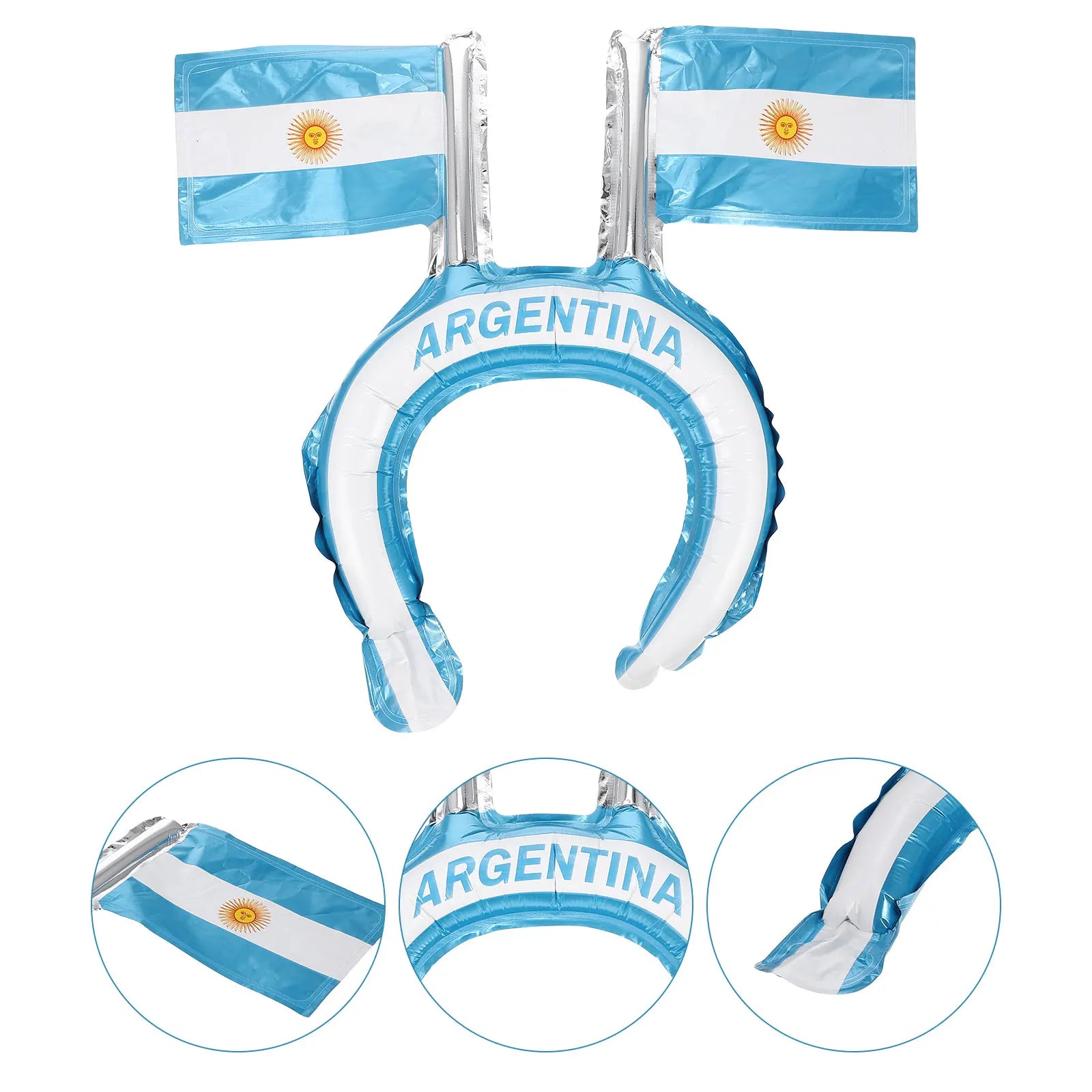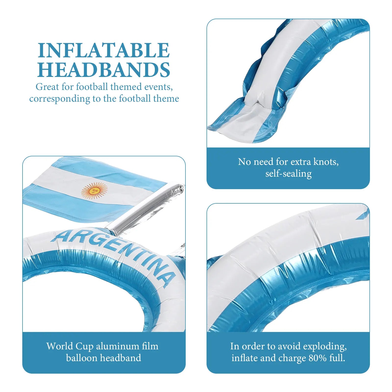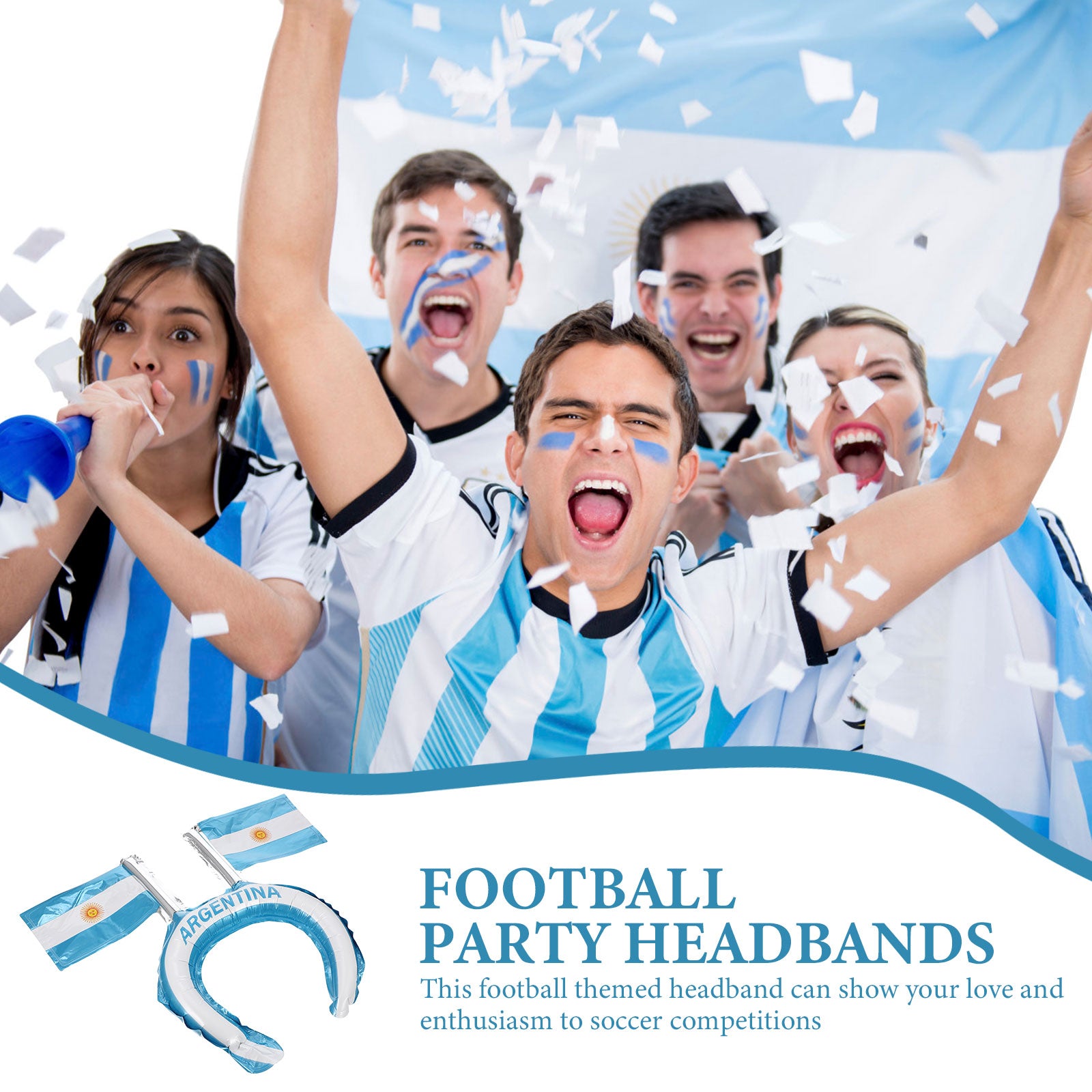 Esta faixa de cabelo inflável requintada e criativa deixará você mais charmosa. A estrutura e o artesanato requintados fazem com que pareça único e distinto.Uma decoração perfeita para decoração de competições esportivas, cheia de moda e beleza.Esta faixa temática de futebol pode mostrar seu amor e entusiasmo às competições de futebol.