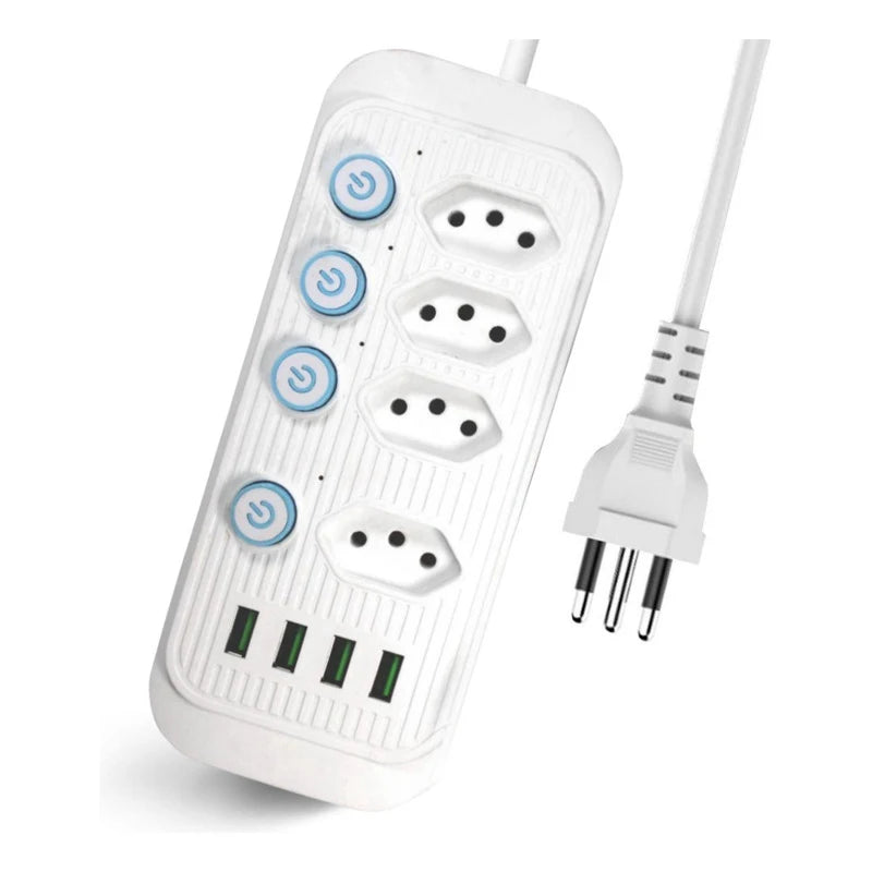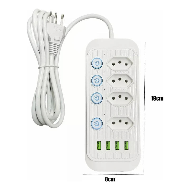 Itens incluídos: 01 x Régua 4 TOMADAS EXTENSÃO 4 USB 2 METROS