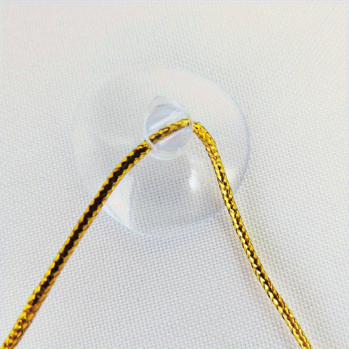 Pendurado: haste de plástico dourado e gancho de ventosa para fixar à superfície de vidro.