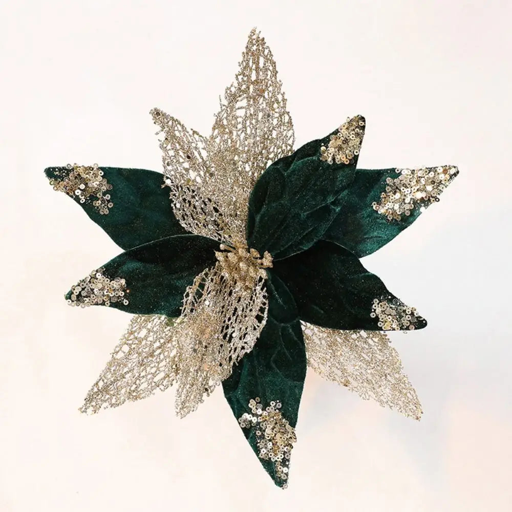 Flores artificiais brilhantes projetadas para deixar sua árvore de Natal cheia e elegante.