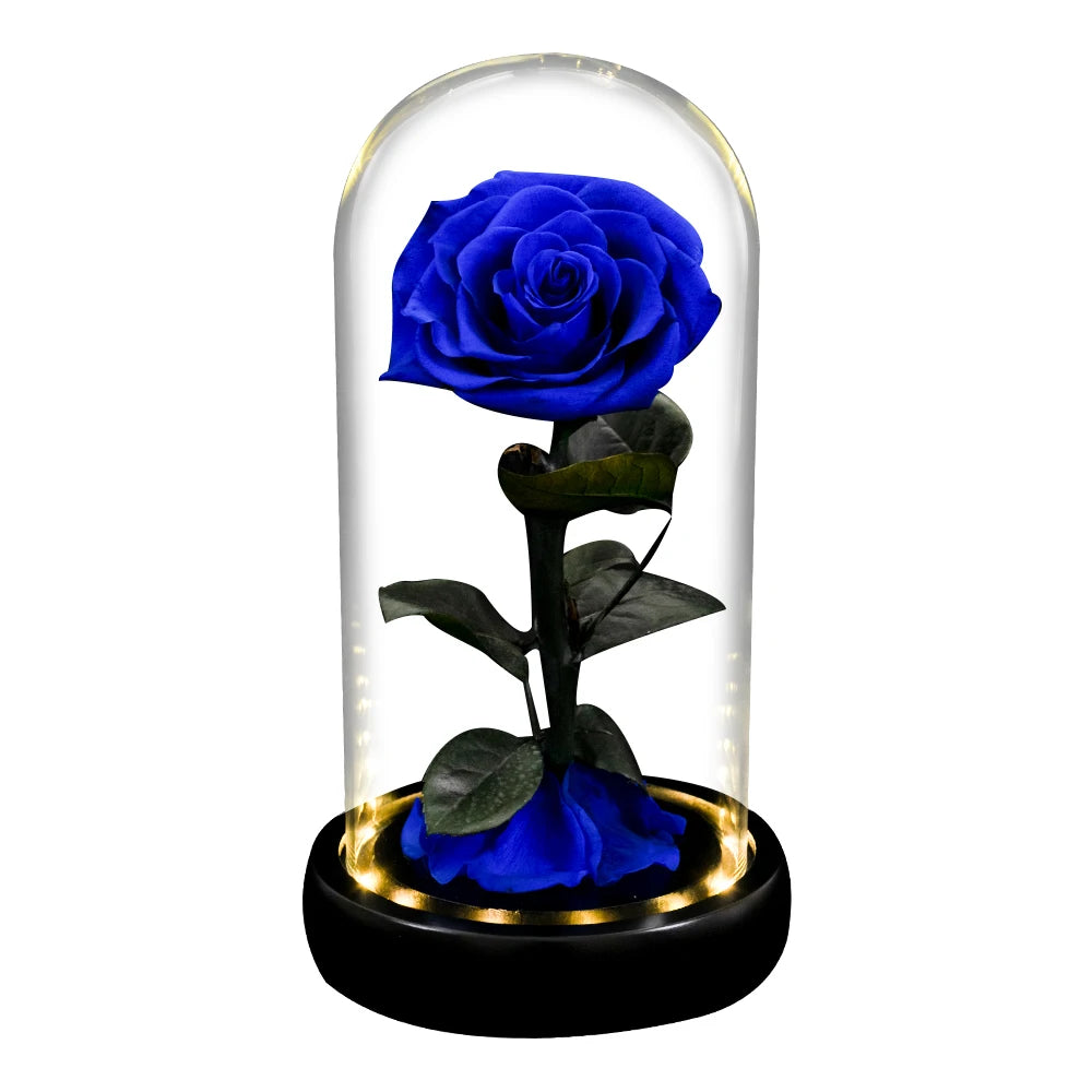 Material:Rosa preservada real, cúpula de vidro, base de madeira
