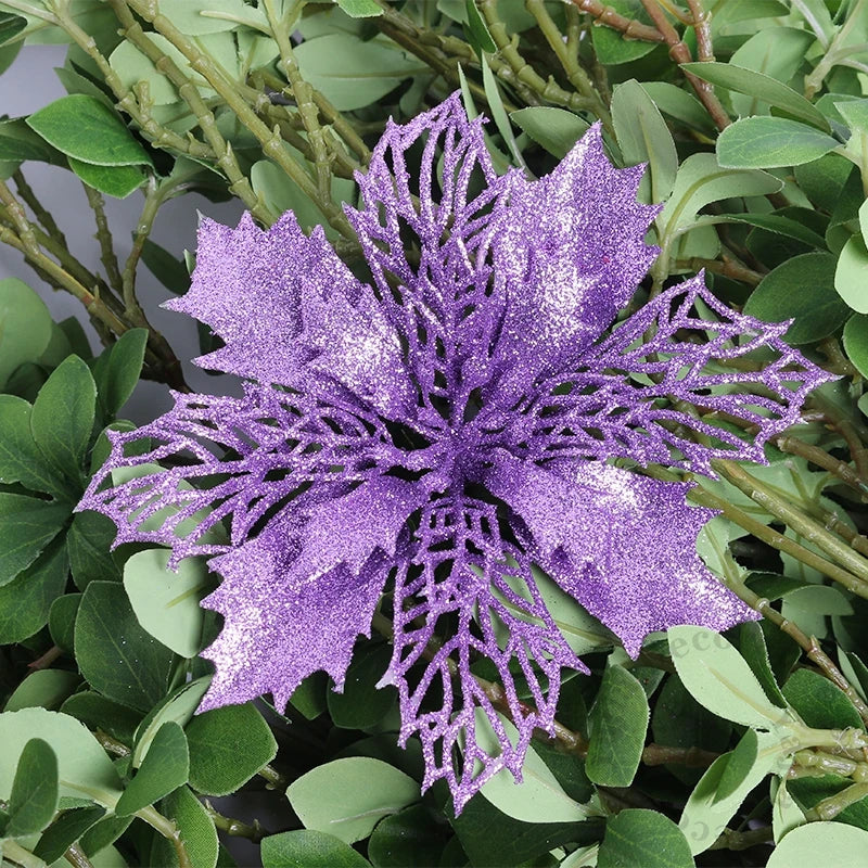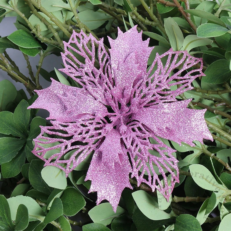 Flores pingente glitter natal 10 Peças natal de simulação de plástico decorativa de flores