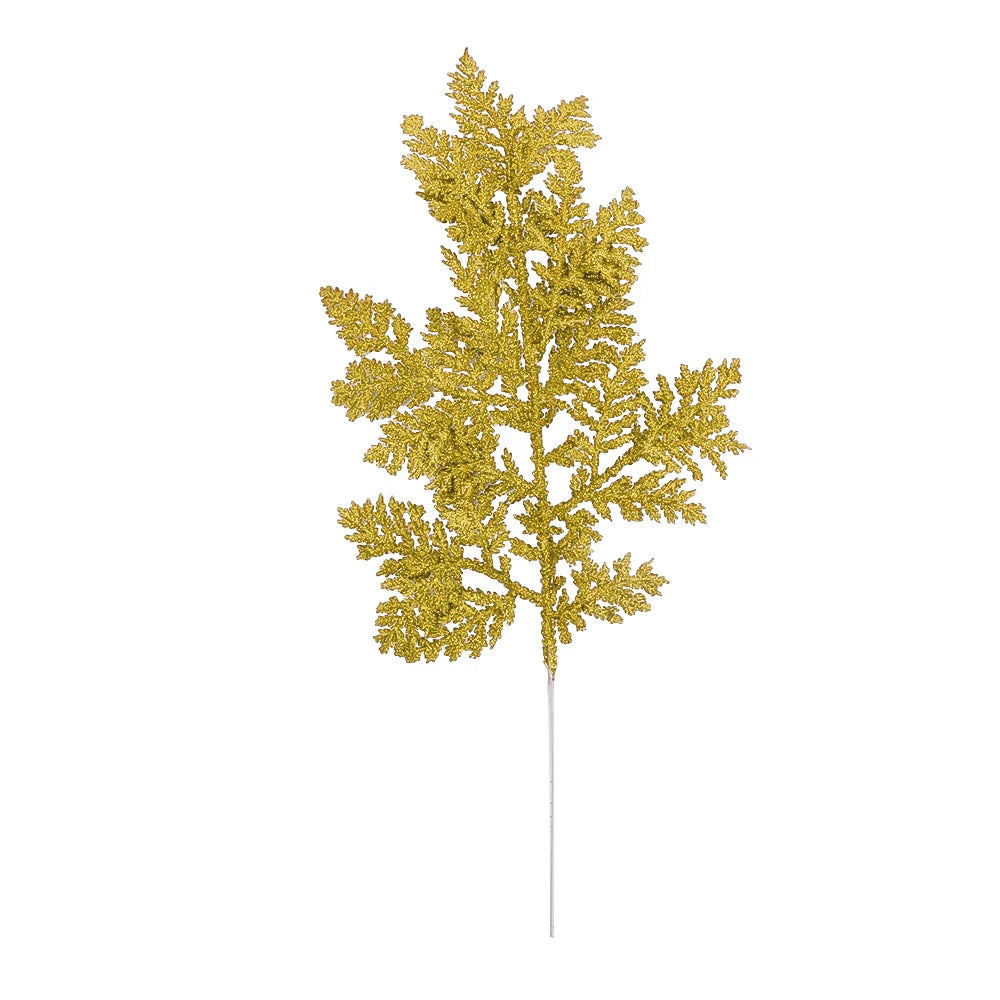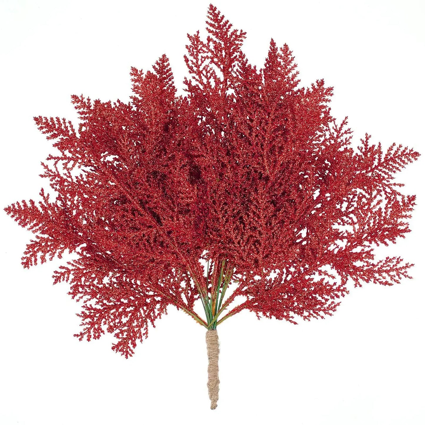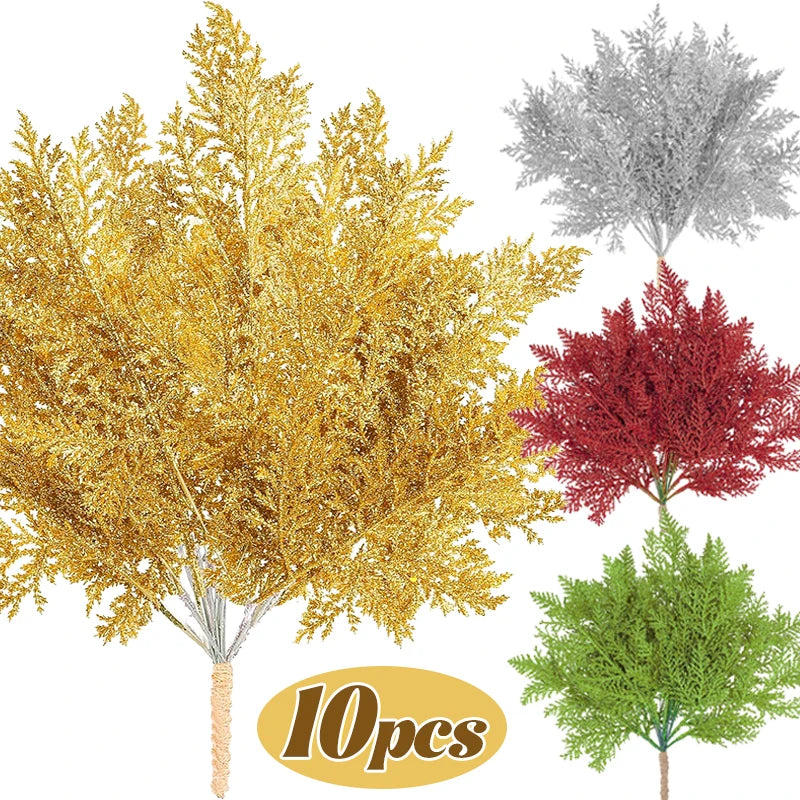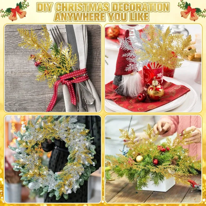 Cor ouro, prata, verde, vermelhoNome: Galhos de agulhas de pinheiro de Natal com folhas artificiais