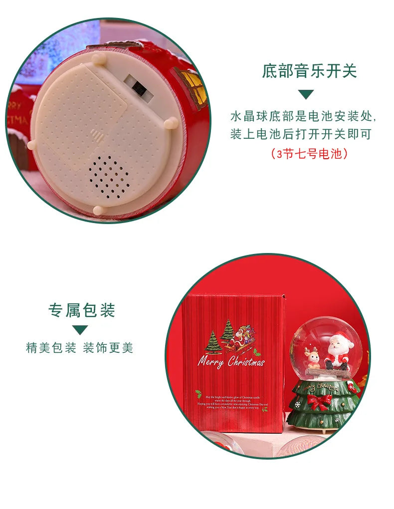 Globo de Neve de Natal, Bola de Cristal Iluminada, Enfeites de Bola de Vidro, Decorações