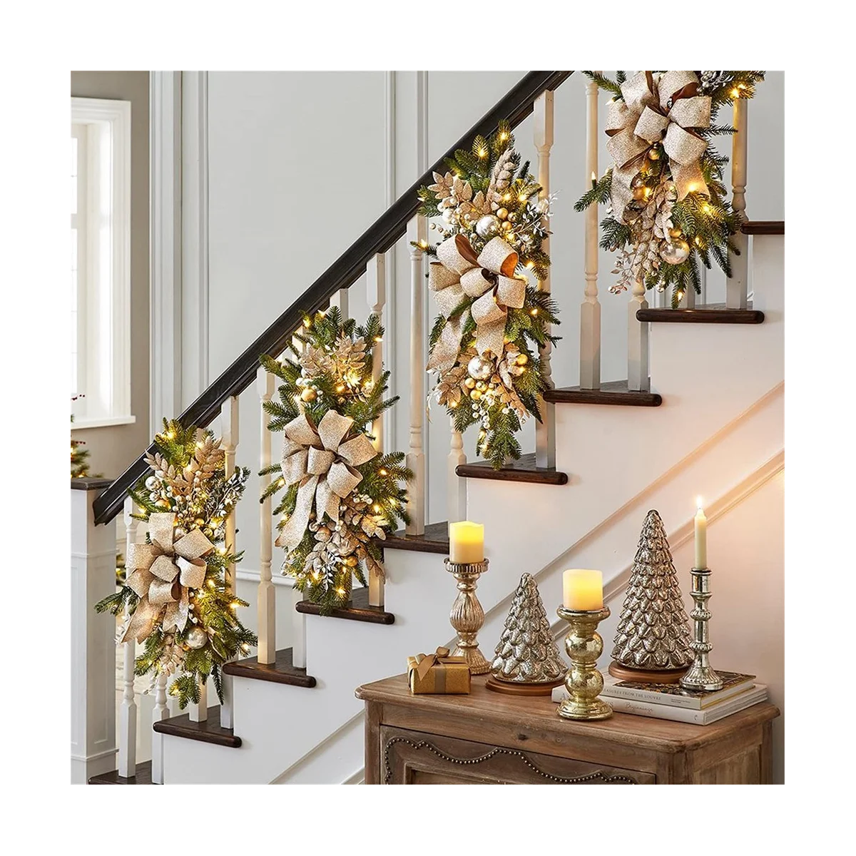 Escada, embelezada com bolas e flores de plástico tradicionais e premium, é isso que vai se tornar uma bela paisagem.