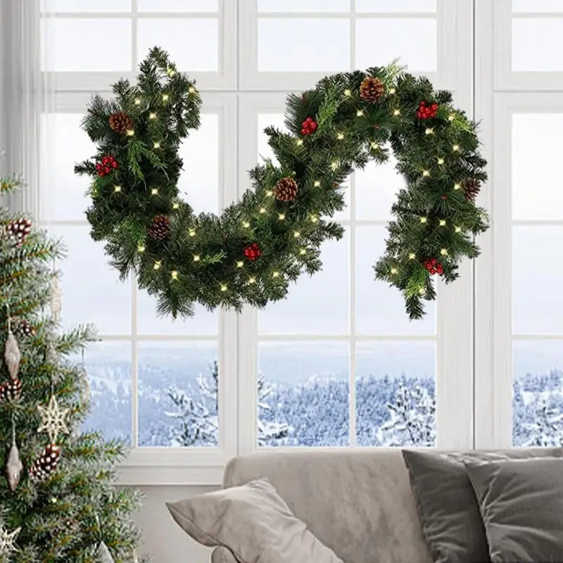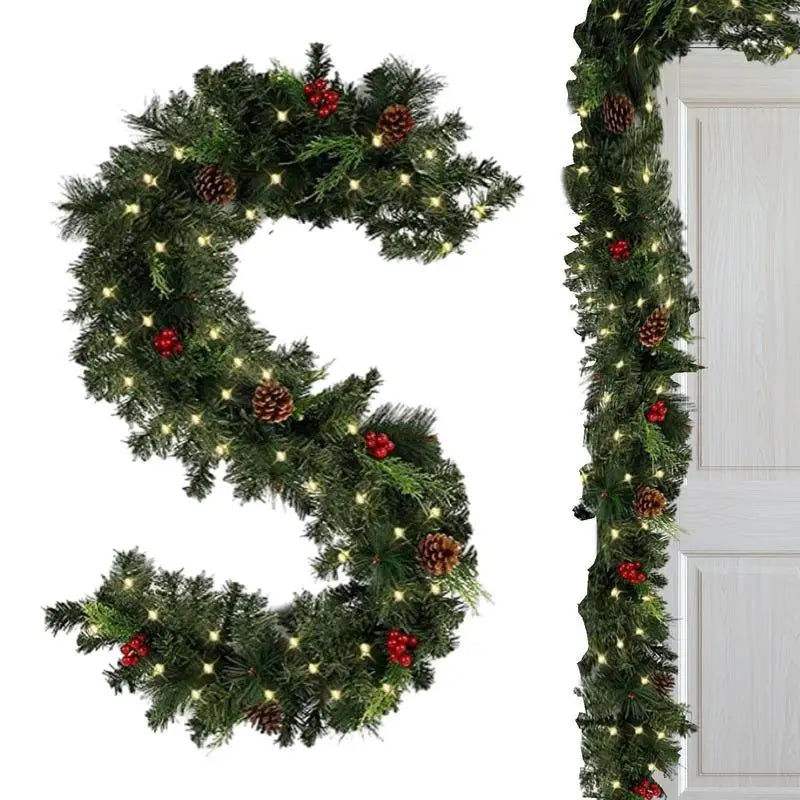 Guirlanda de Natal com luzes | Guirlanda de pinho iluminada o ano todo com temporizador