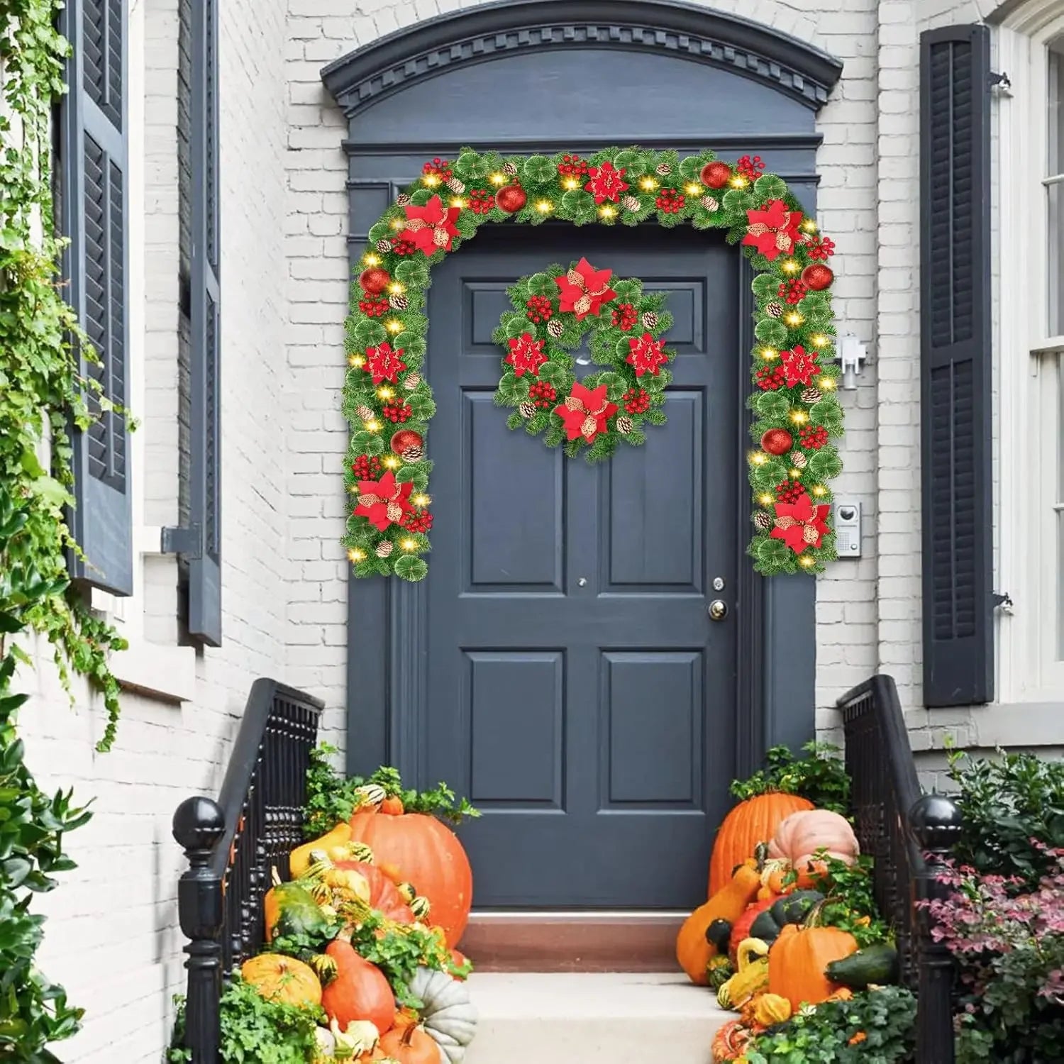 A clássica guirlanda verde e a guirlanda são lindas e grossas, tornando sua decoração mais charmosa e atraente.Ele pode ser exibido em qualquer lugar da sua casa, pendurado na porta da frente, janela, escada, lareira ou mesa da sua casa para adicionar uma atmosfera de Natal mais forte à sua família.