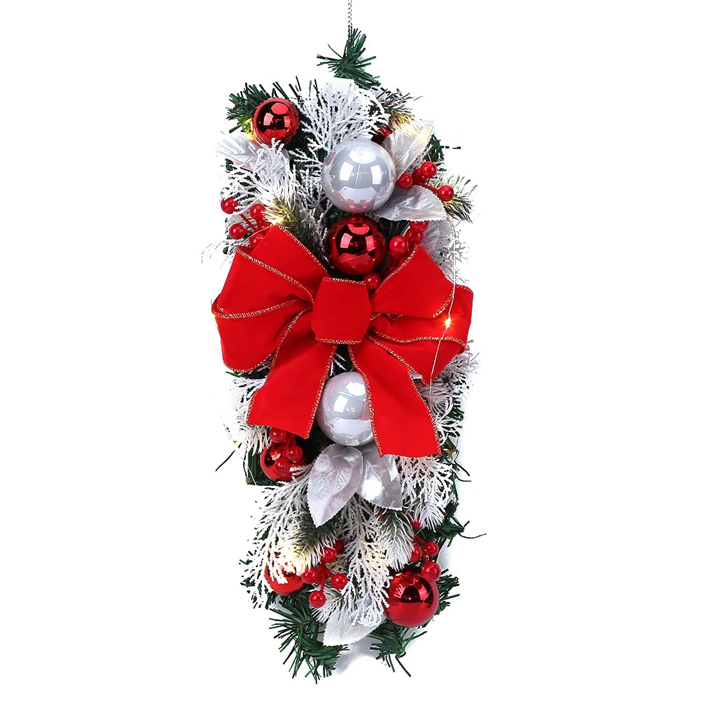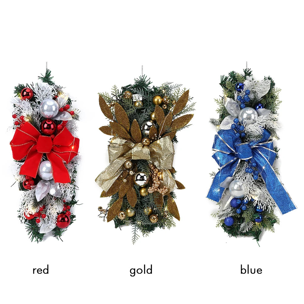 Grinalda de natal artificial rattan reutilizável porta pendurado grinaldas com tira de luz led árvores de natal guirlandas suprimentos para festas de fim de ano.