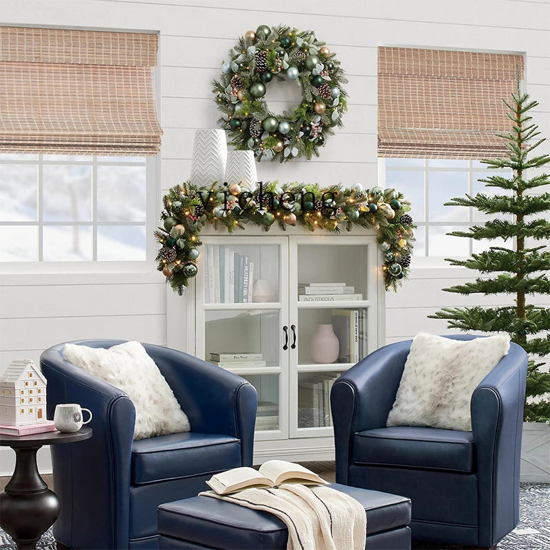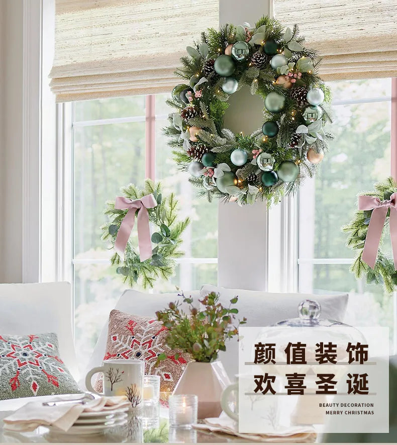 Guirlanda de Natal pré-iluminada de 50 cm para decoração de porta da frente com enfeites