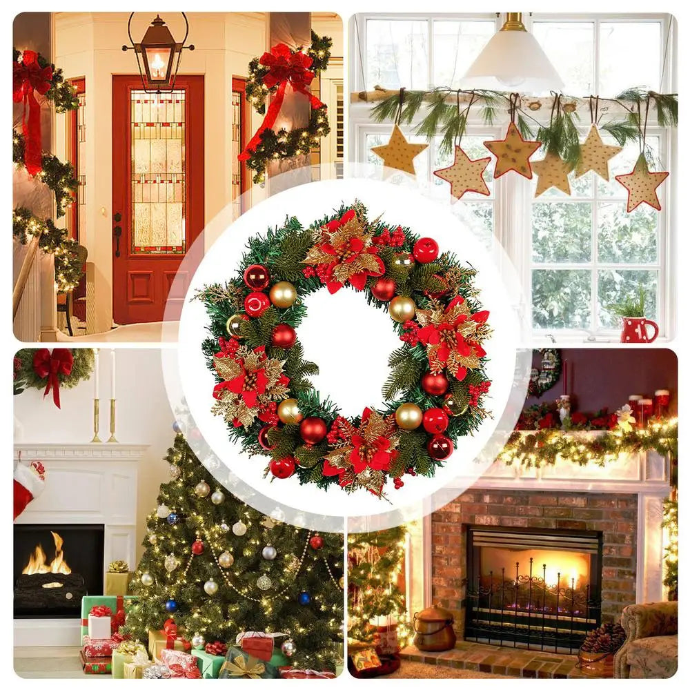 Amplamente aplicável: Esta linda guirlanda de Natal é ideal para decorar paredes, janelas, mesas e até mesmo como guirlanda de porta de entrada para uma ótima primeira impressão. Com seu design versátil, pode ser usada tanto para decoração interna quanto externa.