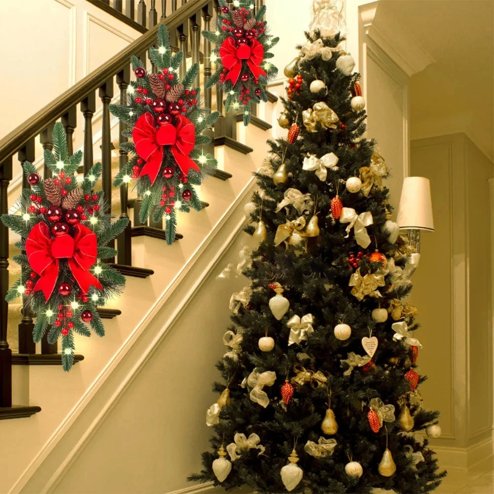 Guirlanda decorativa Azul, guirlanda de Natal pré-iluminadas sem fio para porta da frente