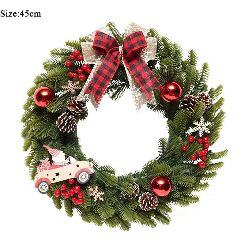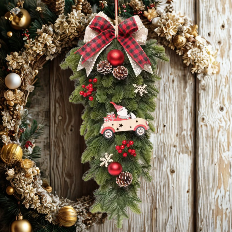 Guirlanda Natal Xadrez em cone pinheiro vermelho vigas grandes artificiais para porta Natal