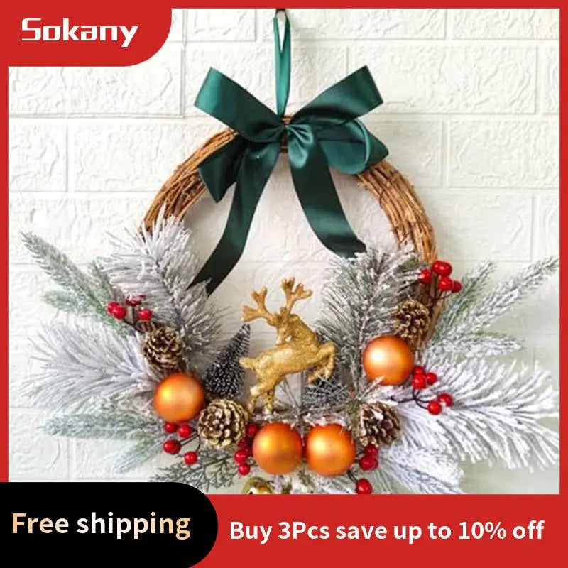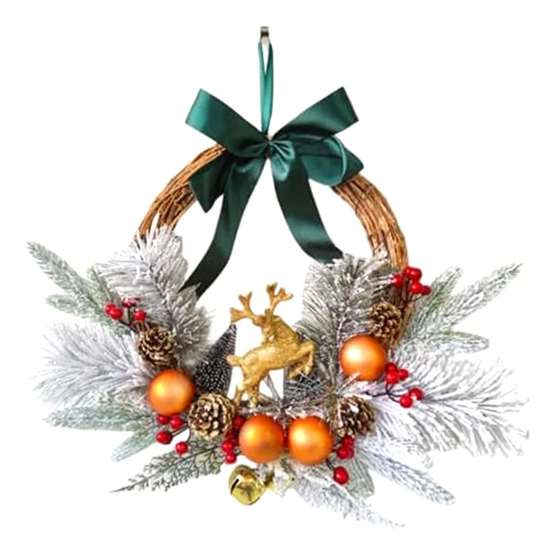 O inverno e o Natal de estão chegando! ! ! Você está procurando uma guirlanda de Natal artificial linda e única para sua casa ou fazenda? Nossa guirlanda de rena de Natal será sua melhor escolha! Renas requintadas, sinos, bolas de Natal, pinhas, frutas vermelhas, árvores de Natal, elementos clássicos de Natal, adicionam uma atmosfera natalina aconchegante à sua casa!