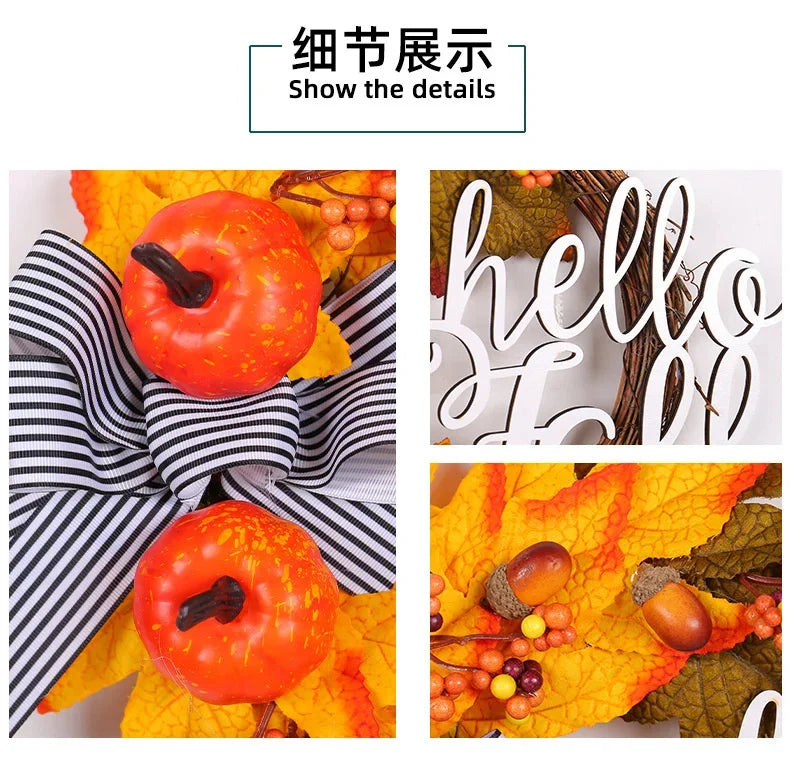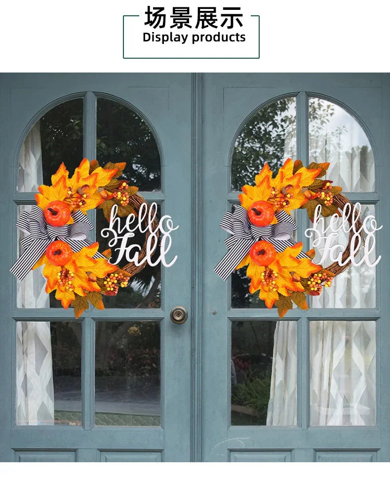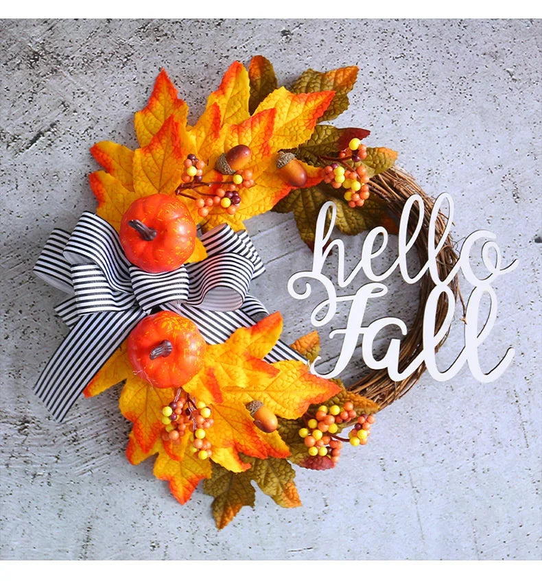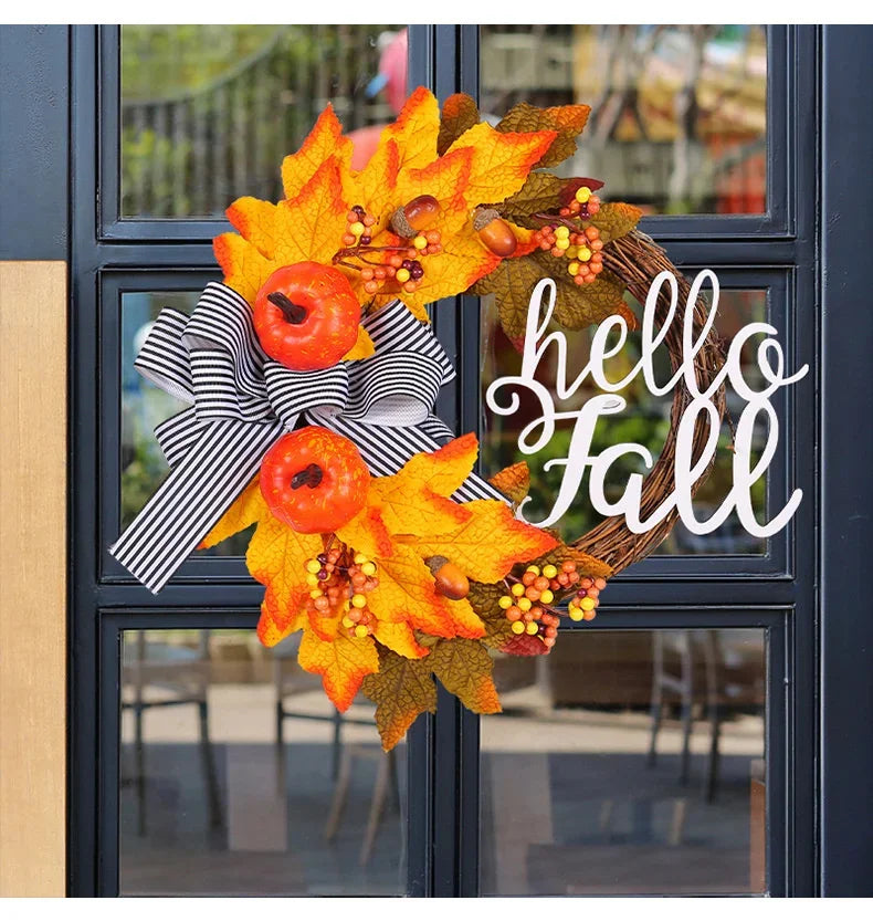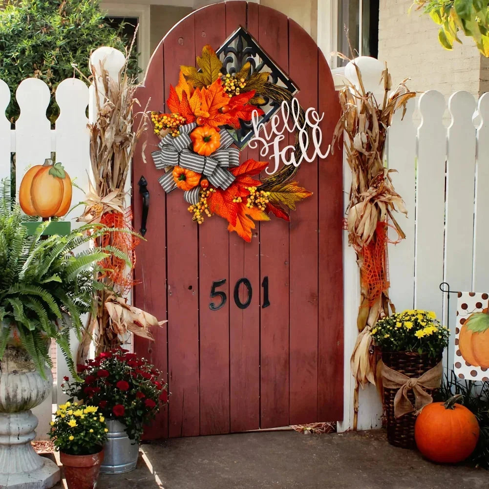 Guirlandas de outono de 50 cm para porta da frente externa, guirlanda de abóbora