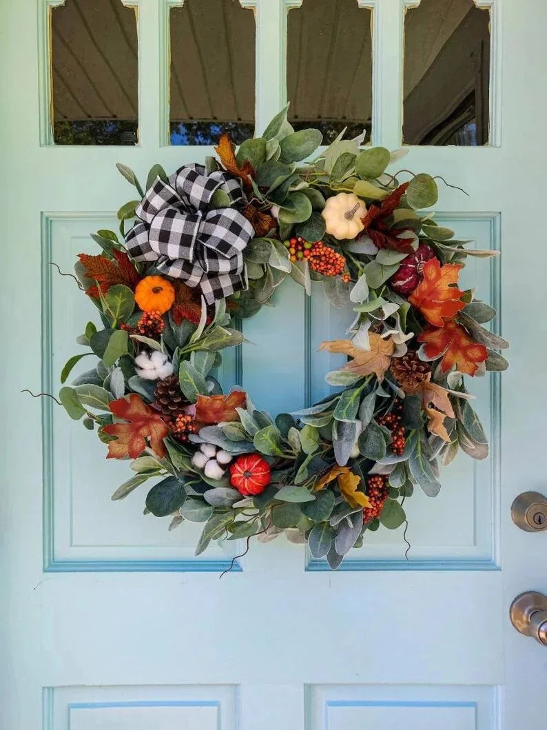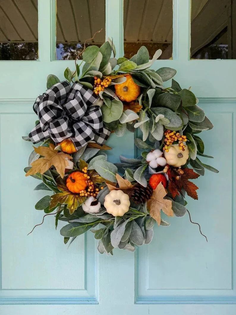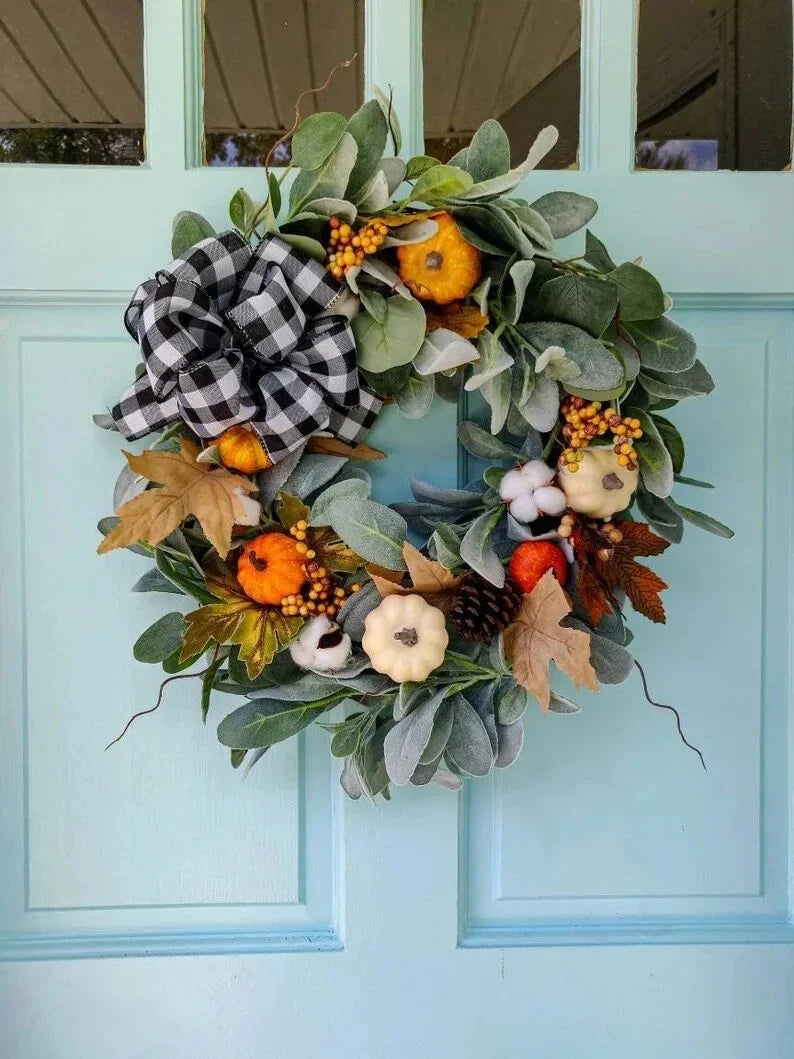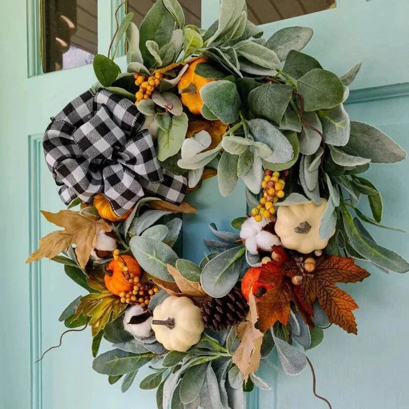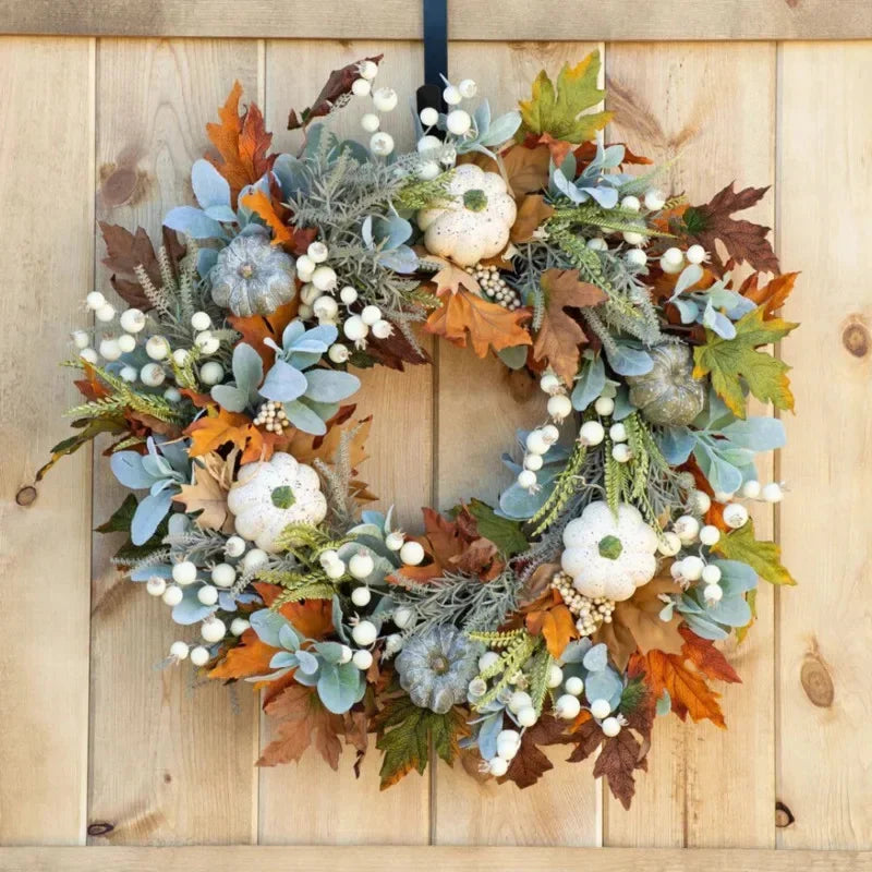 Guirlandas de outono de 50 cm para porta da frente externa, guirlanda de abóbora