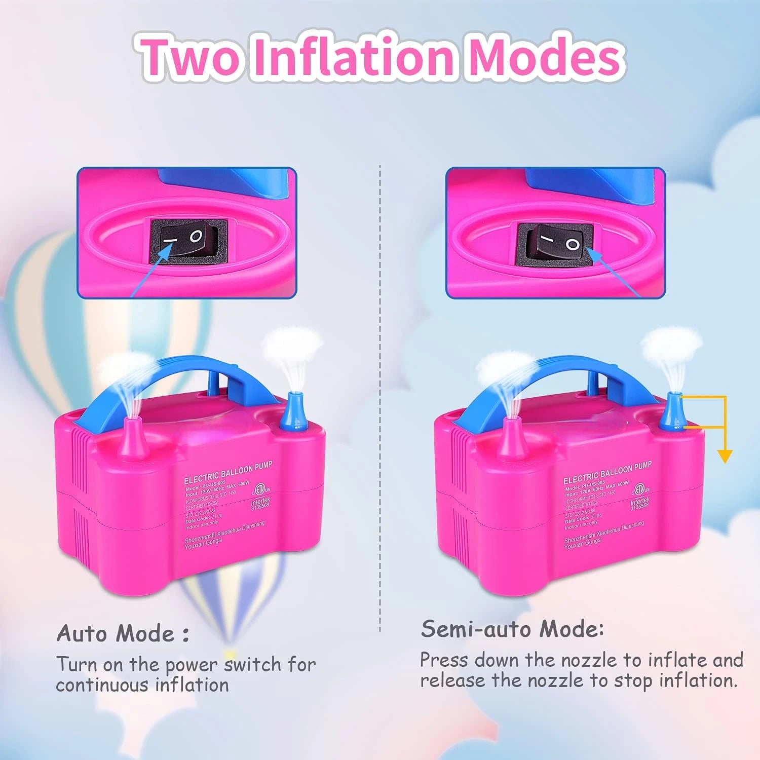 1. Este eficiente inflador de balões elétrico portátil de bico duplo da Lagoa da tarde é uma bomba de alta potência de 110 V e 600 W, perfeita para decorações de festas festivas. Sejam casamentos, aniversários, formaturas ou qualquer outra celebração, esta bomba vermelha rosa inflará balões de forma rápida e fácil com seu modo de operação automática.