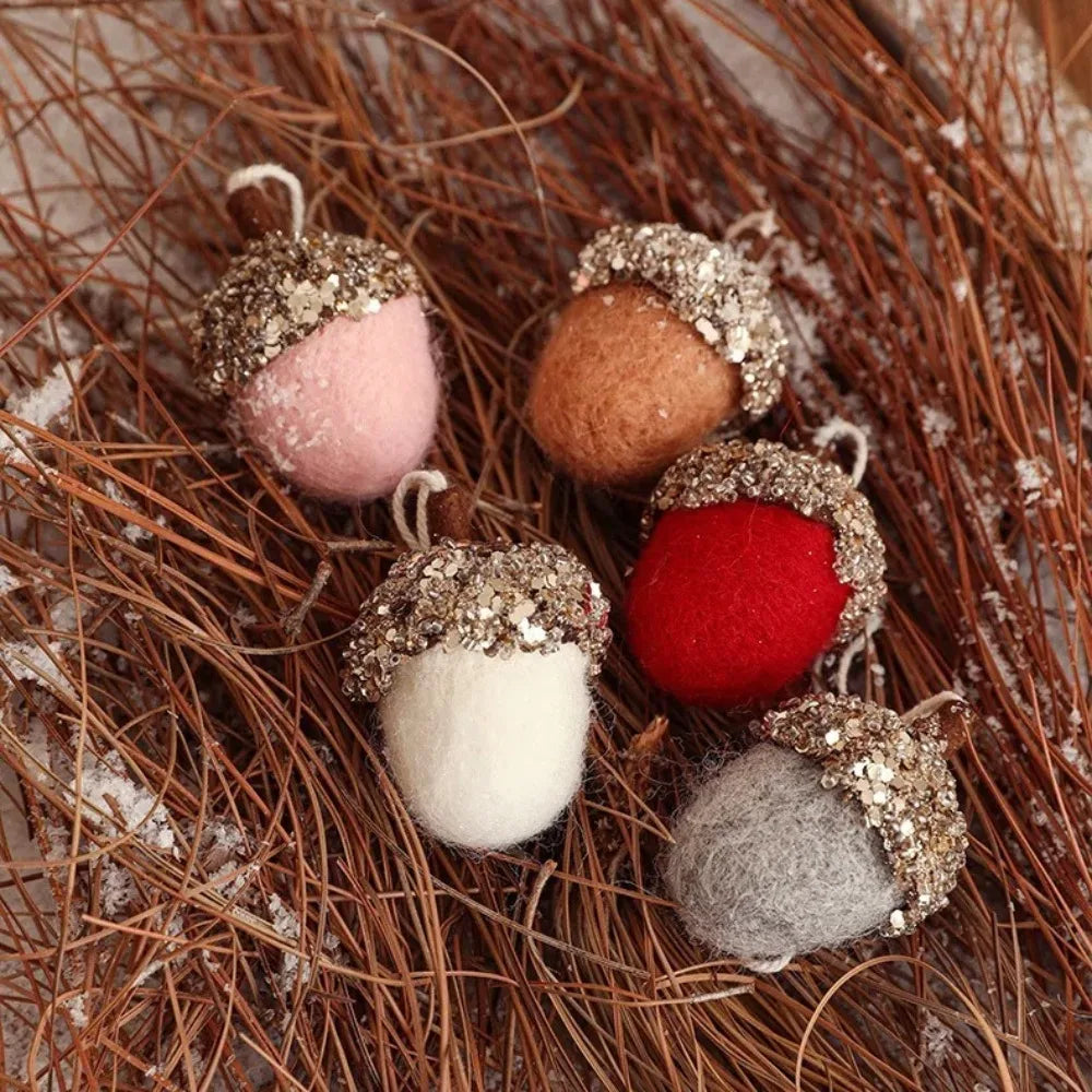 Enfeites de bolinha de feltro pendurado no outono, 1 peças, guirlanda de bolota feltro Natal
