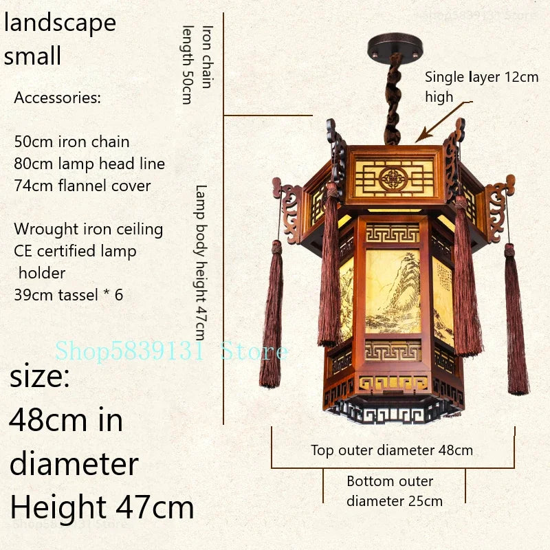 Luminária pendente de lanterna de madeira vermelha estilo chinês, abajur retrô