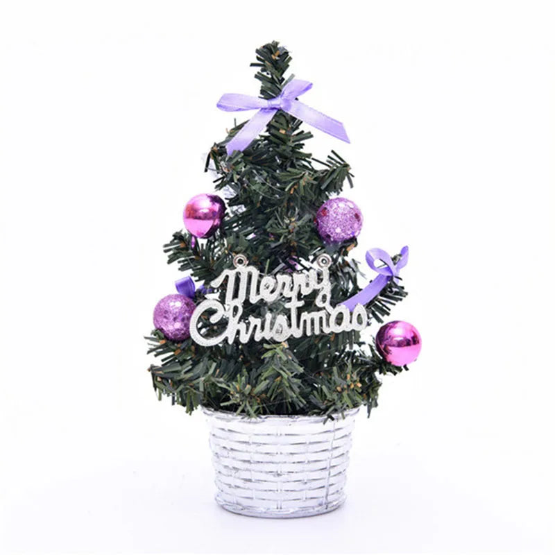 Mini árvore de Natal artificial de 20 cm pequena árvore de Natal com laço bola de Natal