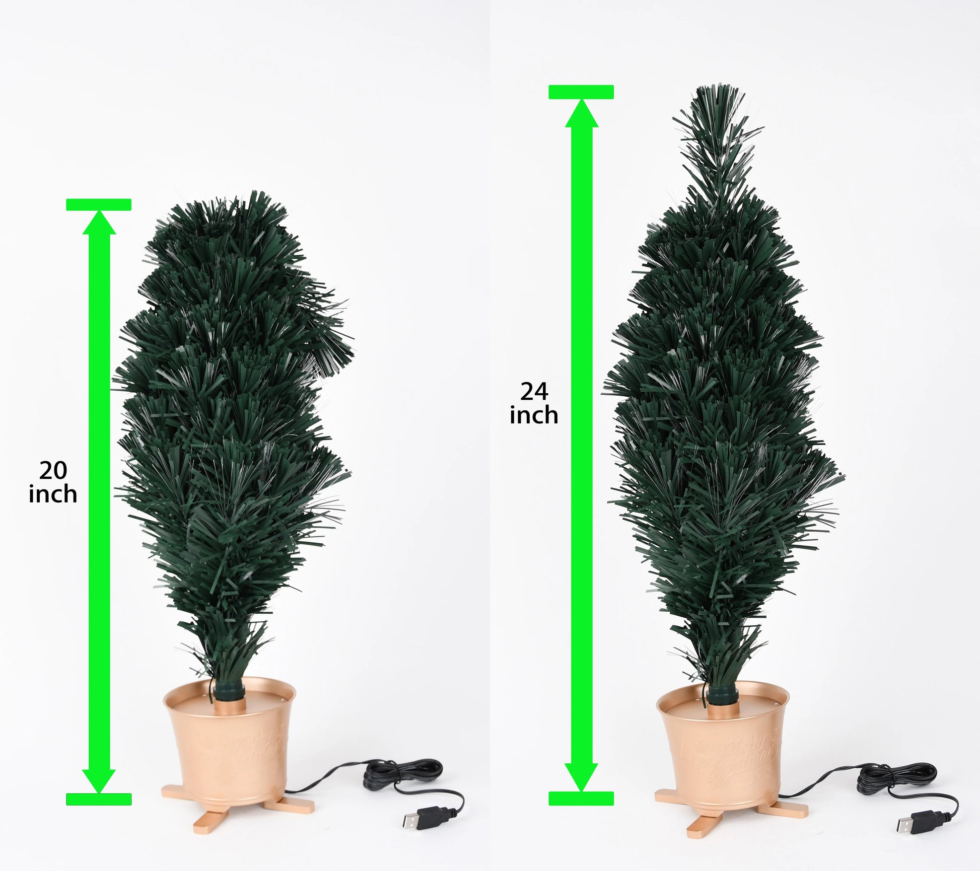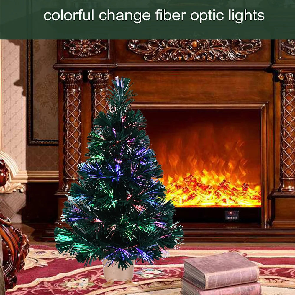 Mini árvore de Natal de mesa de fibra óptica pré-iluminada verde de 24" plantador dourado
