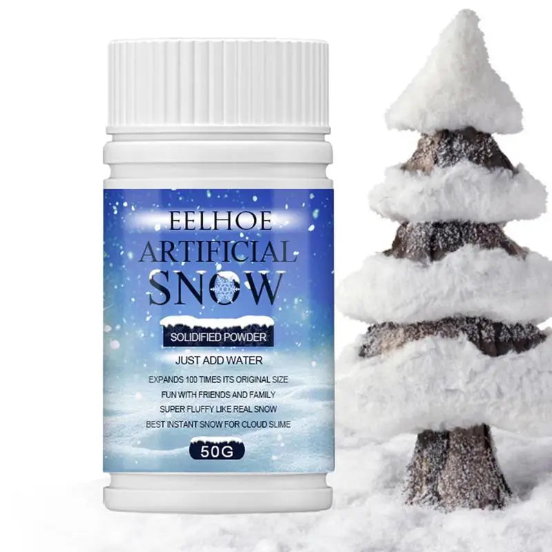 Basta adicionar água a este pó e vê-lo se transformar em neve realista e lisa. Este material polimérico é para a sua pele e não deixa marcas nas suas roupas ou móveis. Você também pode descartá-lo com facilidade e segurança, pois é ecologicamente correto.