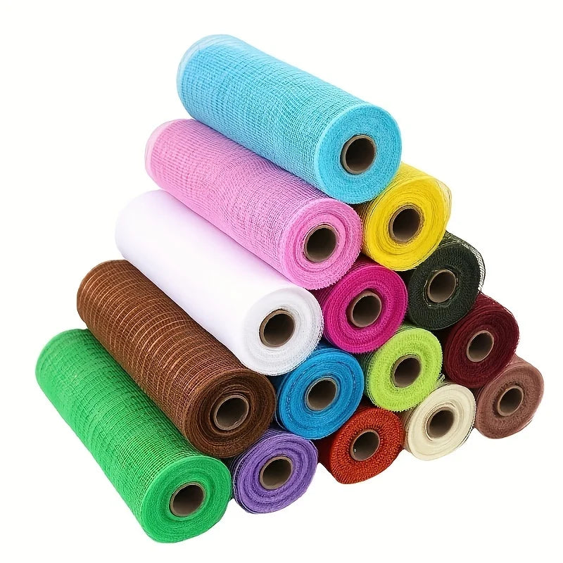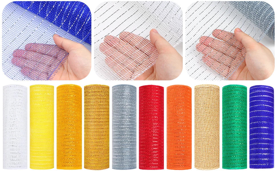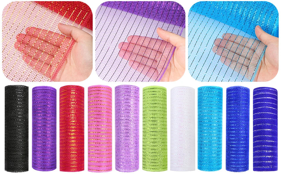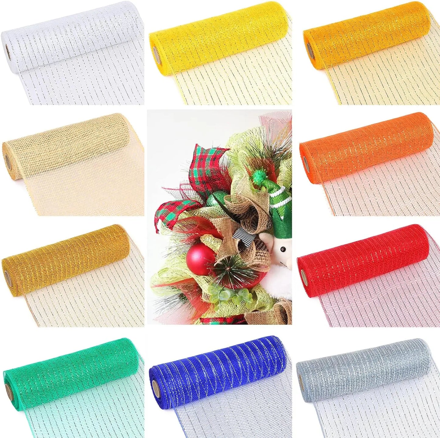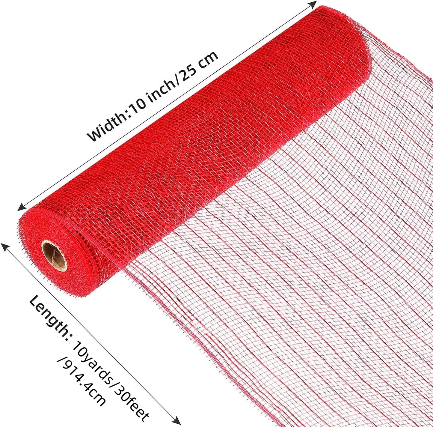 Esses rolos de malha de poliéster decorativo de 10 polegadas/25,4 cm de largura e 10 metros/30 pés/914,4 cm de comprimento são ótimos para vários projetos de decoração; essa largura é adequada para fazer laços, grinaldas, guirlandas e muito mais.Nota: