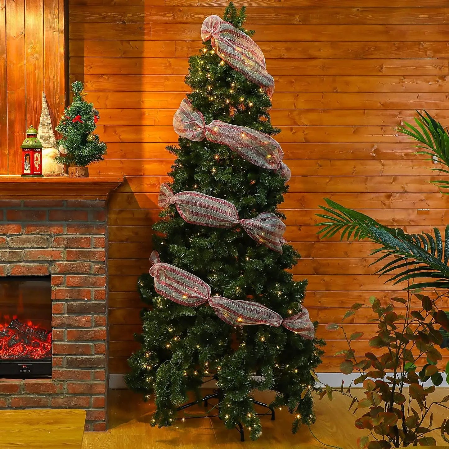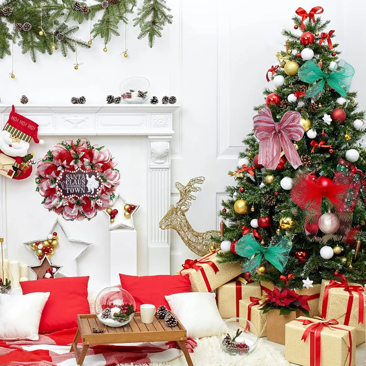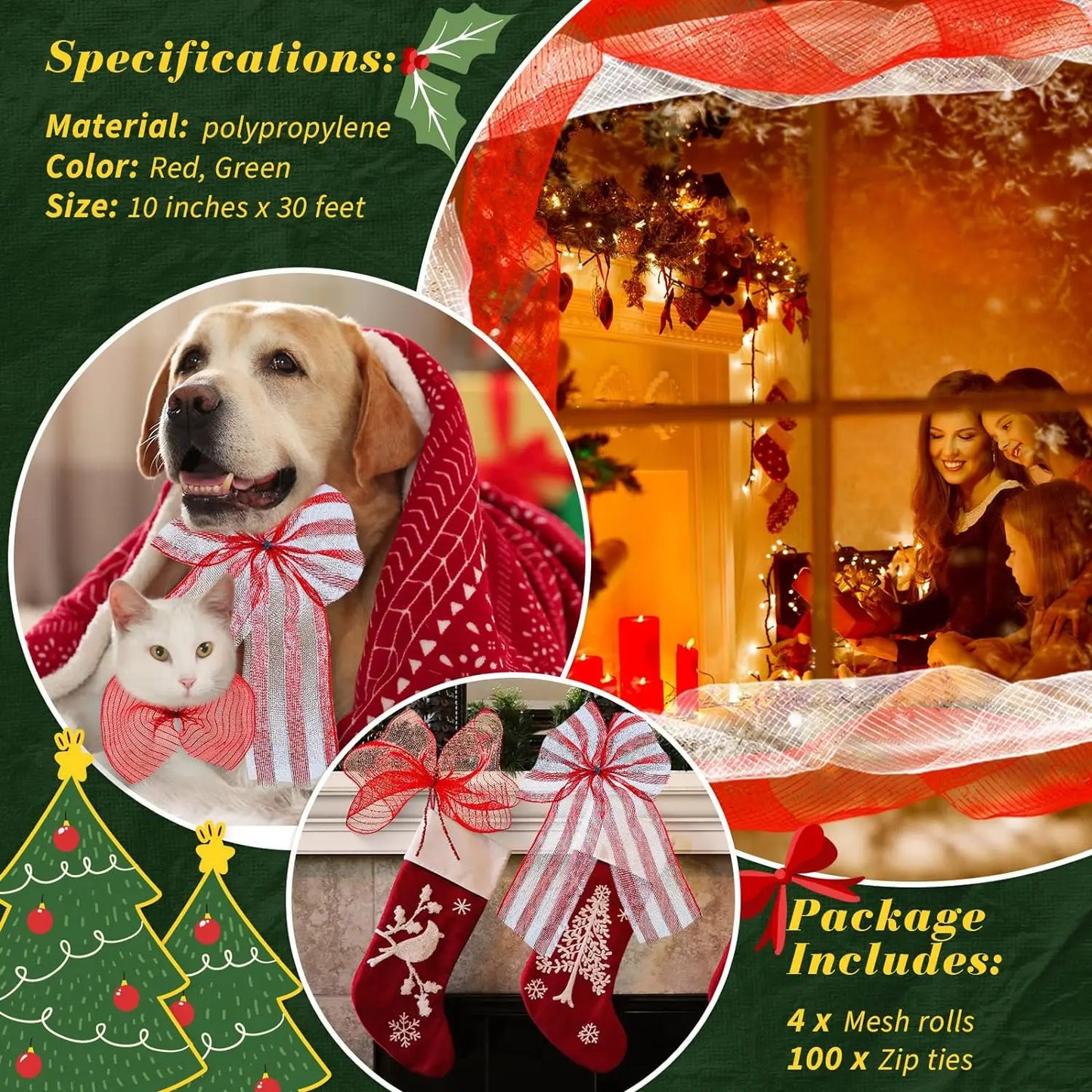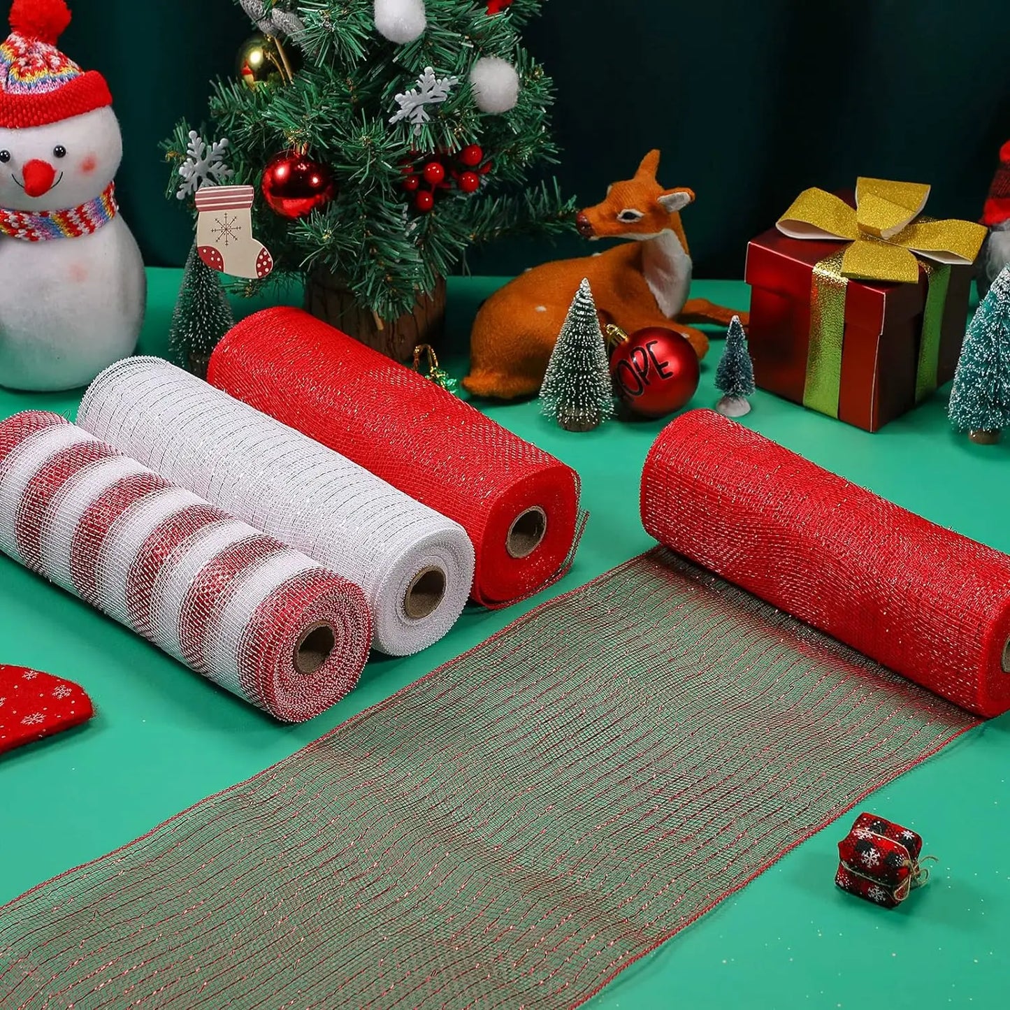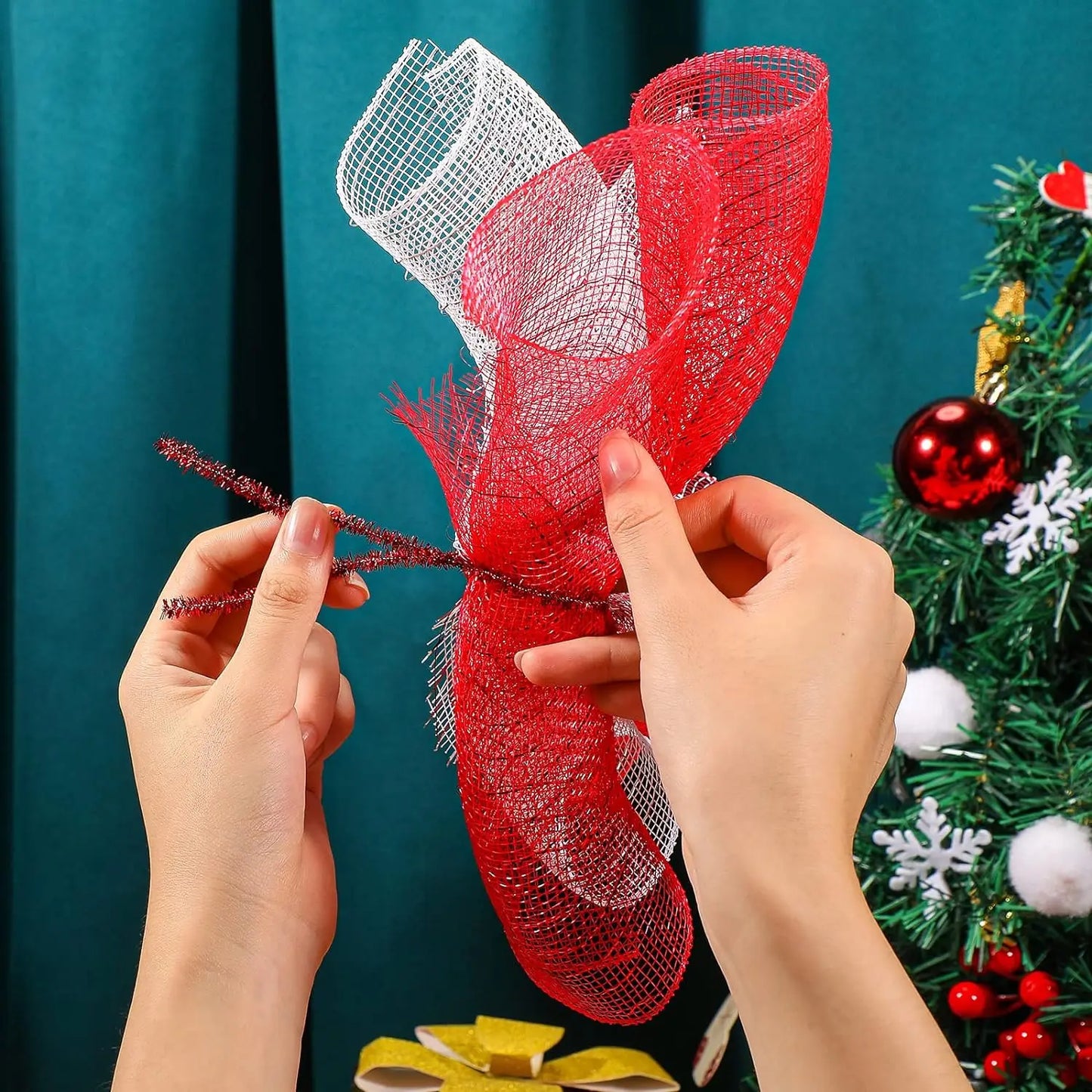 Rolo de fio de malha 10 jardas, 10 polegadas, fita malha decoração de árvore natal