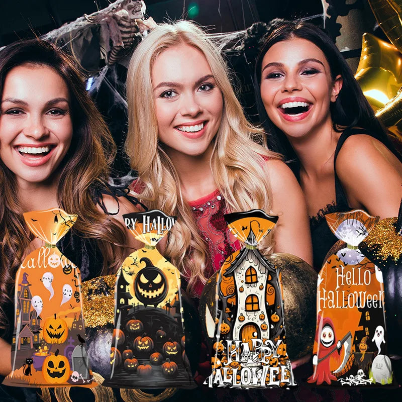 Sacolinha Fantasma Abóbora Feliz Halloween 50 Peças sacos de guloseimas de celofane