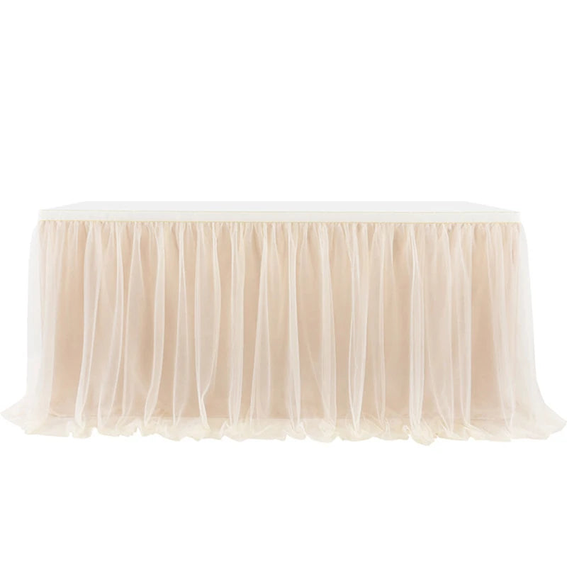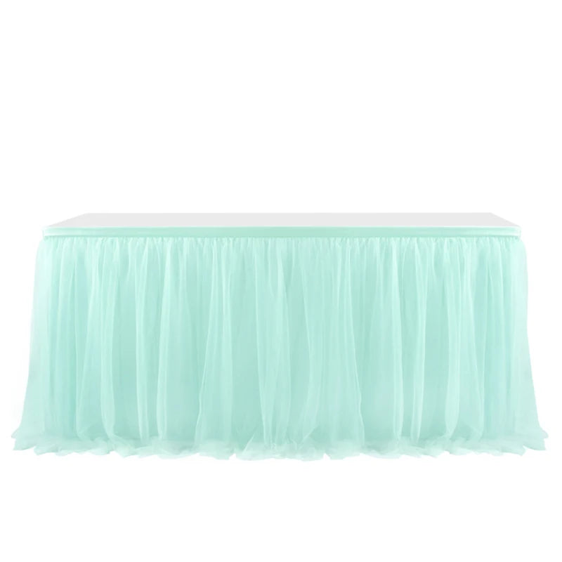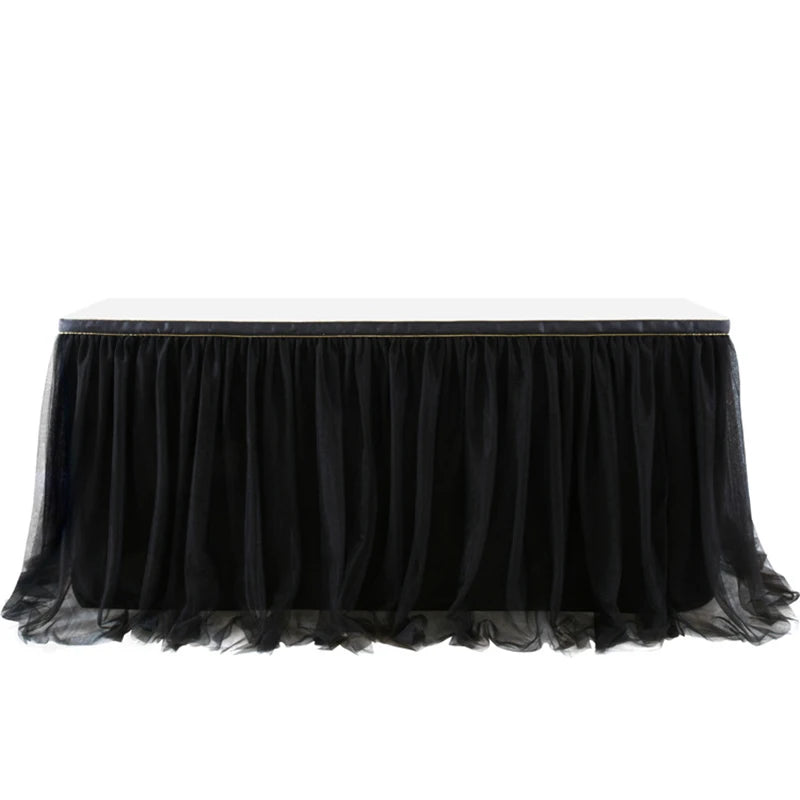 Saia De Mesa De Tule 4/6 Pés Para Mesas Retangulares/Redondas